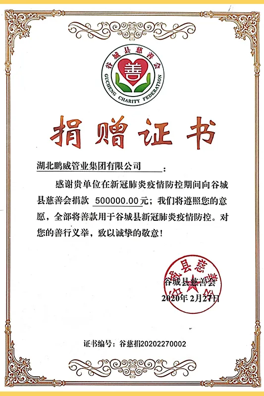 ООО Хубэй Пэнвэй Трубный холдинг было основано в 2013 году с уставным капиталом в 106 миллионов юаней и располагается в Экономико-технологической зоне развития уезда Гучэн провинции Хубэй.